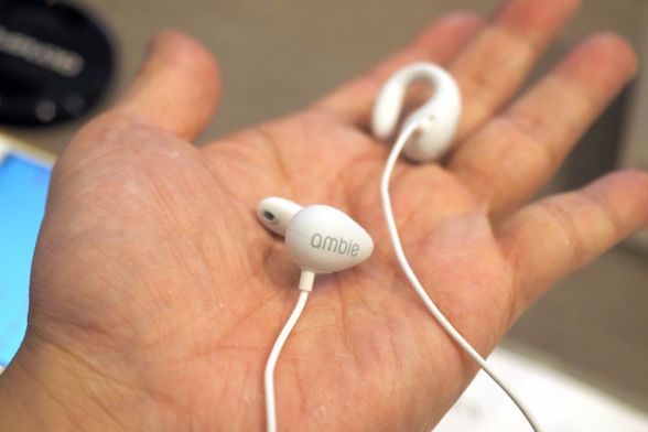 普通だと「シーン」と静まり返った室内で、5分ぐらい難しい顔をした記者が音を聴き始めるのだが、ambieは音楽を聴きながらでも、説明を聞くことが可能。